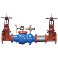 Designed for drop-in replacement of existing longer lay length assemblies without the need for additional spools or spacers, saving 2 to 6 hours of installation labor and up to 2 machine hours per backflow replacement. A custom sized grooved spool installed between the backflow body and downstream shut-off valve allows customer specified assembly lengths to be shipped directly from the factory. Designed for installation on water lines in fire protection systems to protect against both backsiphonage and backpressure of polluted water into the potable water supply. Model 350ADAR shall provide protection where a potential health hazard does not exist. Incorporates metered by-pass to detect leaks and unauthorized water use